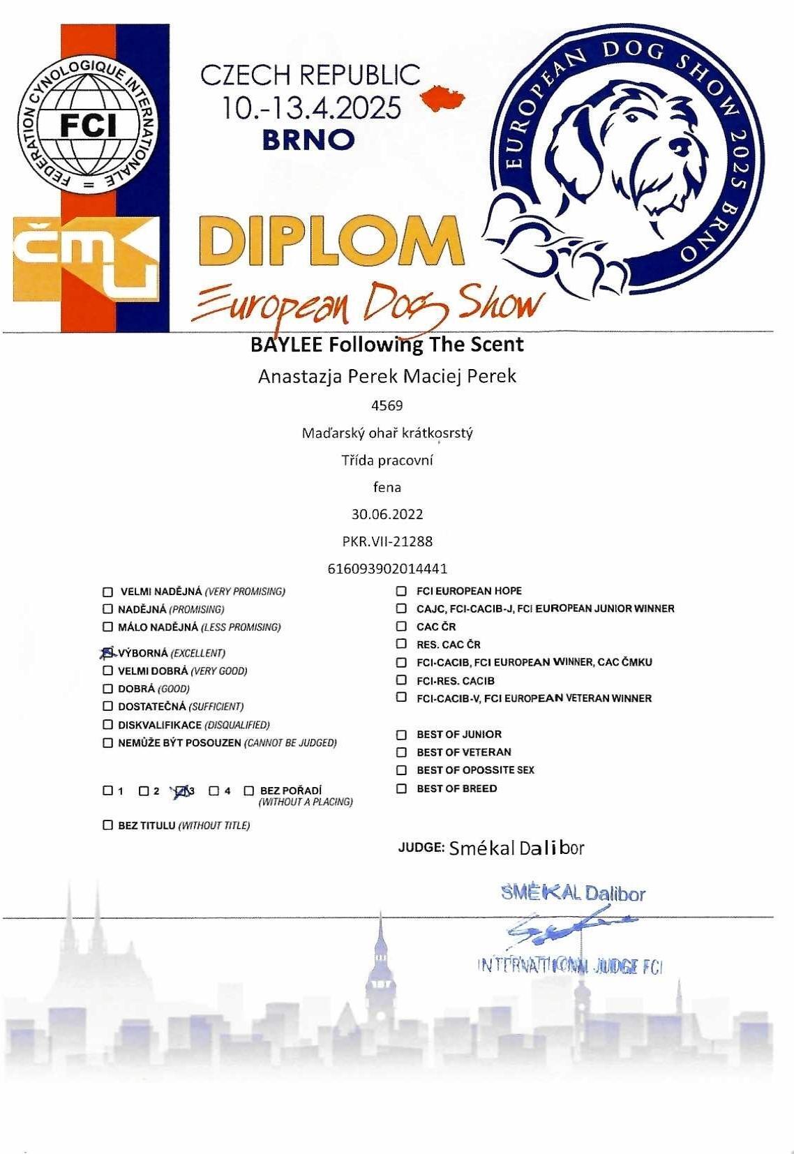 🔥 Już w wieku zaledwie 15 miesięcy zdobyła tytuł Champion of Champions, wygrywając Najlepszą Dorosłą Sukę oraz BOB (Zwycięstwo Rasy) na wystawie w Bytomiu (21.10.2023). Jej temperament i eksterier od początku zachwycały sędziów i publiczność. 🥰